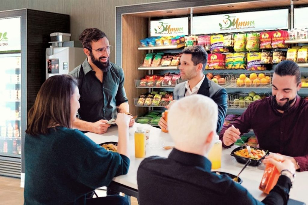 3Mmm offre un service de produits alimentaires libre-service en entreprise et des produits pour les gens qui apprécient la qualité, la variété et la fraîcheur à des prix raisonnables et ce 24H / 7jrs. Notre entreprise permet aux employés et aux employeurs de maximiser la gestion de temps en leur offrant des repas rapidement sur les lieux de travail permettant ainsi de :